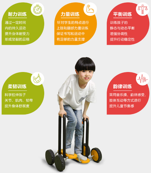 力量巡练:针对学生的特点进行上肢和腿部力量的训练,保证书写和运动中有足够的力量支撑