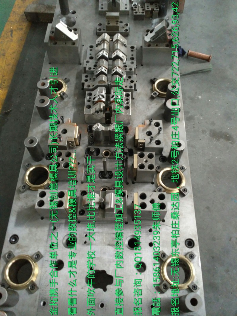 一、模具课程概述:一个不同于培训学校的培训模式——无锡冲压模具设计培训,厂内UG培训好学容易学,公司模具设计方法与经验的掌握对模具设计新人很重要,冲压模具学习要点,金拓朱师傅介绍几点:2、 ----在冲孔与落料工序次序安排时,应把冲孔工序放在前面,这样不但可以确保带料的直接送进,而且又可借助冲好的孔来作为导正定位孔,以提高工件的精度。但在与某些弯曲后的尺寸或某突出部分位置成关联尺寸时,就要根据实际确定冲孔的位置。3、在没有圆形孔的工件中,为了提高送料步距的精度,可以在凹模的UG步序中设计有工艺孔,以使此工艺孔作为导正定位,提高冲件精度。但作为现在的模具设计中,我们对一些精密件的冲压已经逐步或UG采用了外框式的导料带。这样有利于保证复杂工件的加工精度。4、同一尺寸基准的精度要求较高的不同孔,在不影响凹模强度的情况下,应安排同一工步成形。5、尺寸精度要求较高的工步,应尽量安排在最后一工序,而精度要求不太高的工步,则UG安排在较前一工序,这是因为工步越靠前,其积累误差越大。6、在多工步的连续模具中,台冲孔、切口、切槽、弯曲、成形、切断等工步的安排次序,一般应把分离工序如冲孔、切口、切槽安排在前面,接着可安排弯曲、拉深成形工序,最后再安排切断及落料工序。7、冲不同形状及尺寸的多孔工序时,尽量不要把大孔与小孔同时放在同一工步上,以便修模时能确保孔距精度。8、在设计时,若成形及冲裁在同一冲模上完成,则成形凸模与冲裁凸模应分别固定,面不要固定在同一固定板上。尽量把成形凸模固定在脱板上面。后面加装背板。9、在设计时,一定要使各工步已成形部分不受破坏,使带料保持在同一送料线上。10、对于工序步数很多且带有较多弯曲工步的模具,其凹模刃口应尽量采用入块结构,可实现快速更换和修磨。11、针对凸模的固定方式,在实现连续冲压时,要采用挂台和反压块的固定方式,以保证在连续冲压中不会发生凸模掉下而损坏模具的事项。切记!12、在模具结构强度和位置允许的情况下。多工步的模具要尽量采用浮动导料销。13、切边的接口形式。在连续模中,经验不足的人常会将接口做成清角,我建议采用半圆切口。