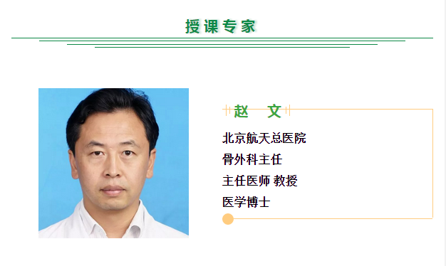 赵文 北京航天总医院骨科医学博士,硕士研究生导师,骨科主任,骨科学术带头人,曾于国内多家知名医院进修学习,公派美国哈佛大学医学院及南卡罗莱纳州大学医学院,进行骨科专业深造,现任国际矫形与创伤外科学会委员,中国医师协会骨科医师分会创伤工作委员会委员、骨科基础工作委员会委员、中华医学会北京分会骨科专业委员会委员,北京解剖学会委员,北京自然科学基金评委。在国际期刊(SCI)第一作者发表论文数篇,为多个国内外杂志的编委。作为第一发明人获国家级专利12项,获国防科技进步三等奖。从业近三十年,具有丰富的临床经验,在骨关节创伤修复、关节置换及脊柱疾病的诊断与治疗方面有较深的造诣。并在骨科学术领域完成了大量临床研究。