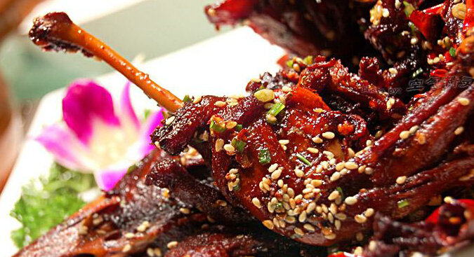 鸭子的加工、制作程序、中草香料腌制、飘香粉制作、撒料配制、鸭子上色、烤制的火候、掌握、铁板炒制、炒制配料等全套技术学习。