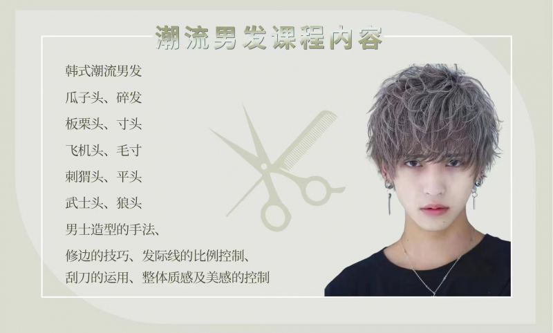 贵阳潮流男发培训班采用小班制教学,零基础开始学习,理论与实操相结合,针对男士发型的一个创意潮流班,提升学员剪裁技巧,使学员熟练运用先进的男发裁剪手法。