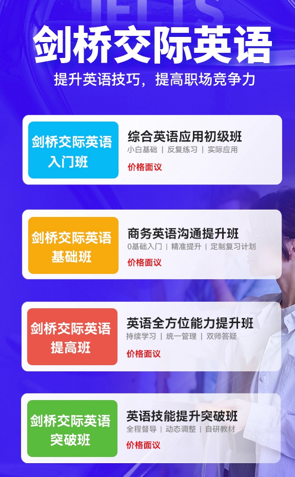 朗莘雅思的课程对标雅思托福的评分体系,对应不同目标分段的雅思托福考试,设有不同种类的课程,课程类型包括,应试急训类、应试能力提升类、交际能力提升类等课程注重培养学生的语言实际运用能力,而不仅为了应对考试。
