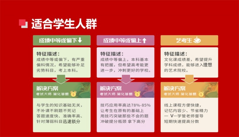 数题高是考试大师齐下广州旗舰店中心,《考试大师》隶属于山东简化答题文化科技有限公司,公司专注于做高考辅导的应试教育,以教材和视频课和辅导服务为载体,研发并推广《科学备考-简化答题》。我们拥有国内商界著名的策划团队、教育界专业的教研团队。项目于2004年科研立项,十数年的潜心研发,拥有多项自主版权及专利。公司于2021年正式推向市场进行全面市场化运作。该课程的推出也速成为双三学子考前必备的应试类课程,短时间内在业界获得了良好的口碑!公司旨在为高考学习提供专业的教育支持,助力孩子都能考上理想大学。
