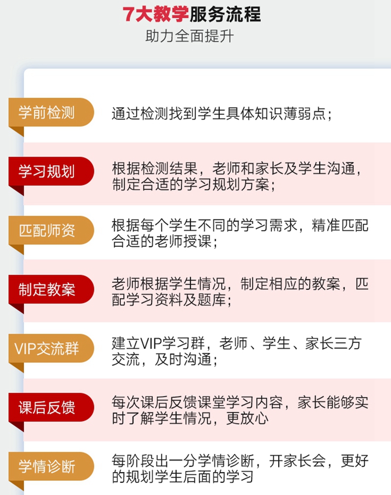 高中辅导课程教学严格遵守学练测一体的教学模式,帮助学员针对性掌握知识,结合薄弱环节有的放矢进行学习,明确学习短板,通过学练结合的模式锻炼学员对于学习内容的把握。